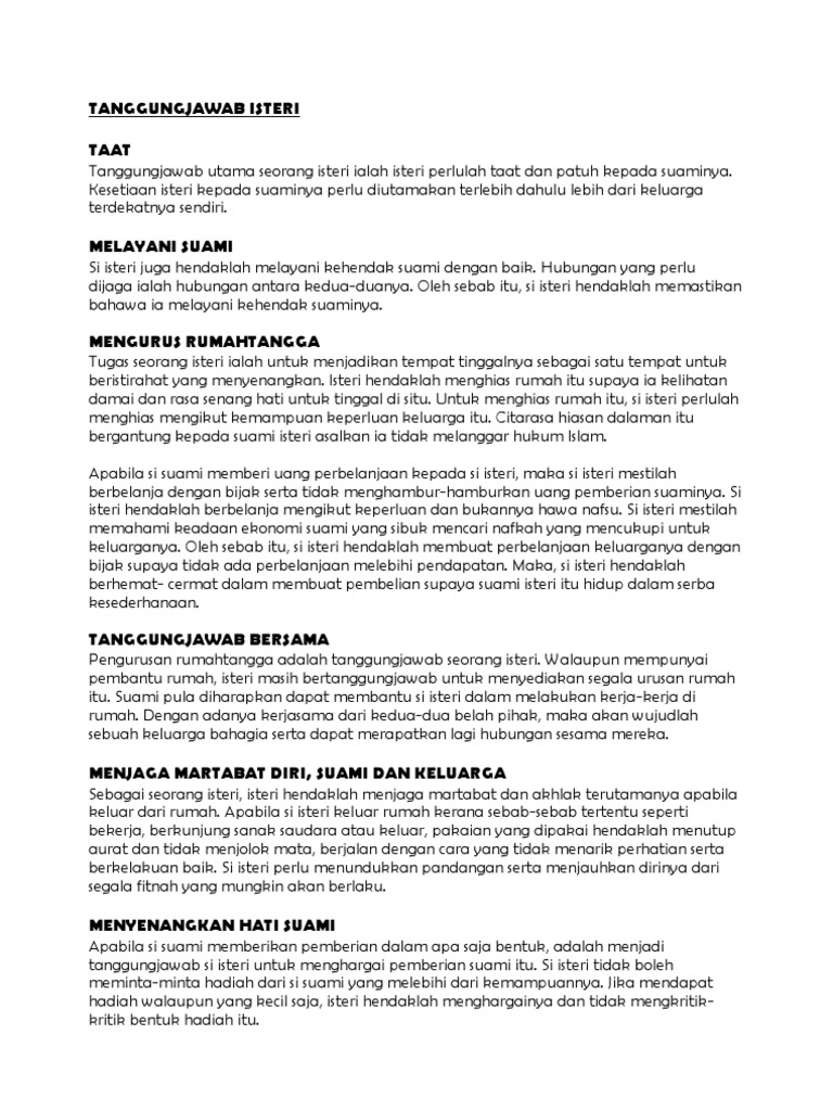 Tanggungjawab Suami Isteri from image.slidesharecdn.com Oleh karena itu tanggung jawab suami terhadap istri dalam agama kristen yang pertama adalah menghormatinay. Perjalanan menempuhi kehidupan bersama semestinya harus berpandukan syariat islam. Pasangan suami isteri harus bekerjasama dalam menjalankan tanggungjawab ini dengan sebaik mungkin. Telah ditetapkan oleh allah s.w.t dengan jelas kaunseling seperti dalam jadual 5.6 berasaskan kepada pengabaian hak isteri dan tanggungjawab. Mengatur tanggung jawab antara keduanya menjadi hal penting yang lazim dilakukan agar. Tanggungjawab suami dalam islam #1 menyediakan rumah yang selesa. 31.01.2019 · tanggungjawab suami dalam islam #2 menyediakan makan dan minum. Apakah tanggung jawab isteri/suami menurut ajaran islam dan nasrani?