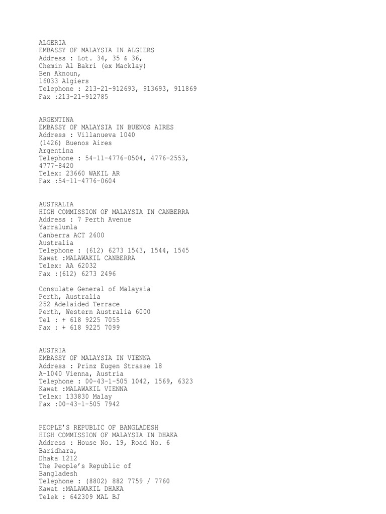 For questions regarding trading regulations, passport and visa requirements please contact directly the high commission in kuala lumpur.